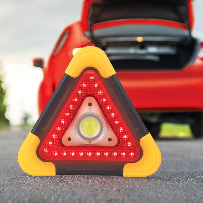 LUZ triangular LED recarregável solar - Esta é uma luz de advertência de segurança LED multifuncional recarregável COB. Com painel recarregável movido a energia solar com plugue USB. Para carregamento de entrada de luz e carregamento de banco de potência de saída para dispositivos USB. Carregue esta luz antes de sua viagem de acampamento e, em seguida, carregue a luz do telefone ou dos dispositivos ao acampar ao ar livre.